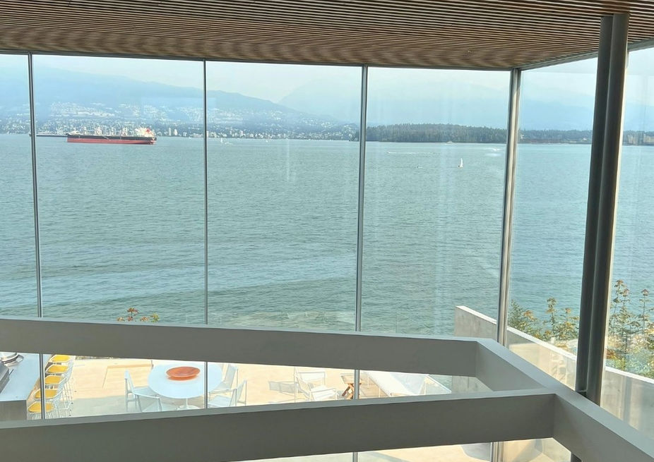 Point Grey presented an exceptional automation challenge: a 20-foot tall by 28-foot wide corner door system with four massive triple-pane panels, each weighing 3,000 pounds. The Otiima multi-slide configuration required moving 9,000 pounds across the front (three panels) and 3,000 pounds on the side (single panel) independently. Structural constraints added complexity—motors needed to mount above a steel beam, with the drive shaft passing through the beam's flanges. The architectural vision demanded completely invisible automation components and flawless operation despite the extreme weight and unconventional mounting scenario.